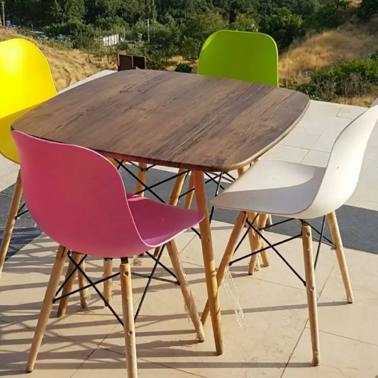 صفحه میز ام دی اف ضدخش وکیوم پایه میز و صندلی چوب راش خراطی شده نشیمن صندلی نشکن شرکتی و در انواع رنگ به انتخاب خریدار