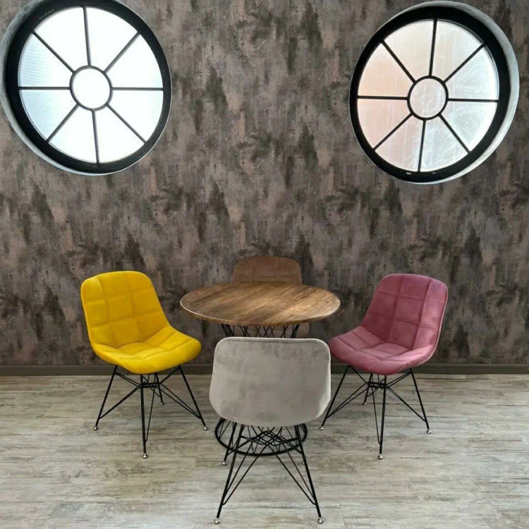 ست 4نفره میز برتویا و صندلی ناهارخوری پارچه ای پایه فلزی