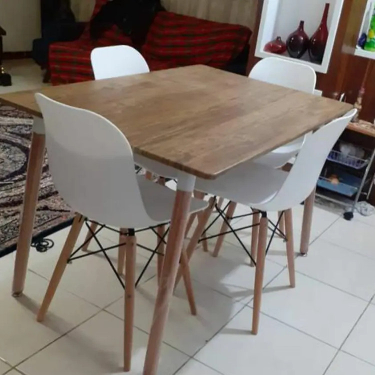 توجه: قیمت درج شده برای ۱ عدد میز مستطیل ۸۰ در ۱۲۰ و ۲ عدد صندلی فایبرگلاس پایه چوبی است(قیمت ست چهار نفره۳۸۰۰)