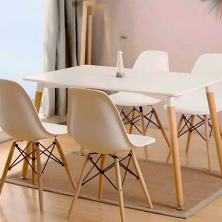 ست چهار نفره میز و صندلی کافه، رستوران، خانه، آشپزخانه فایبر پایه چوبی شرکتی