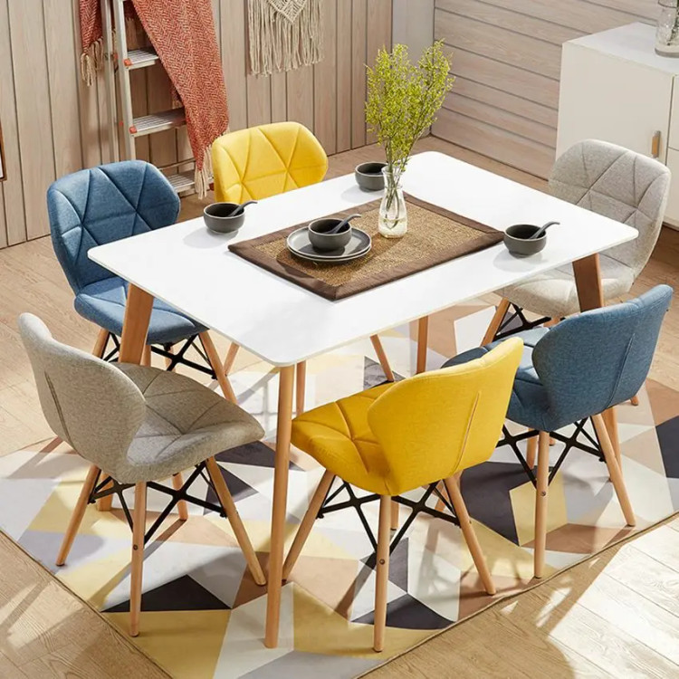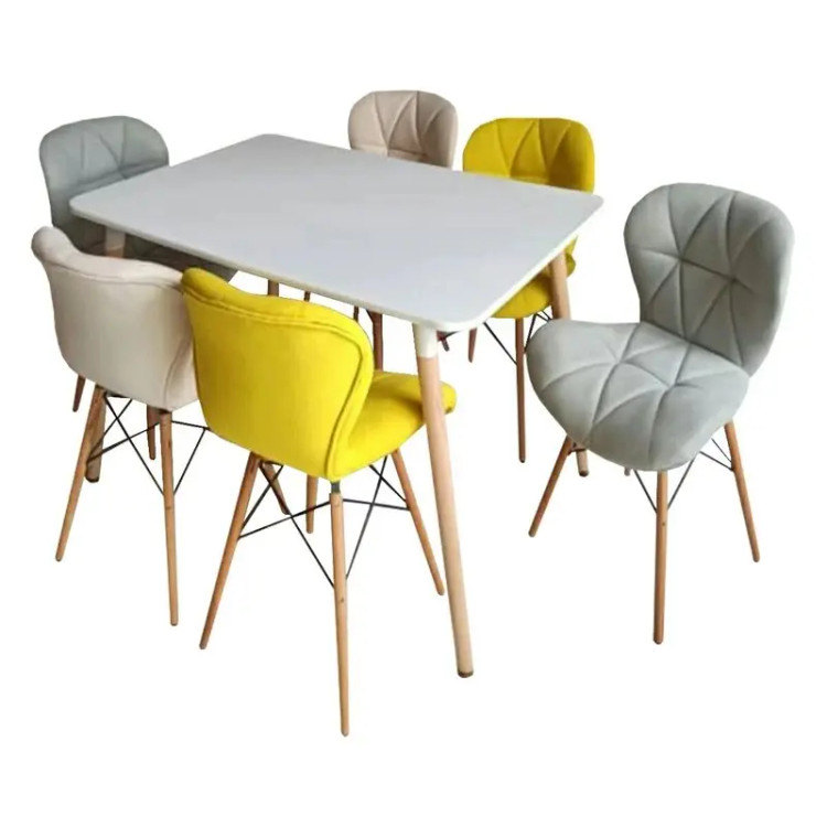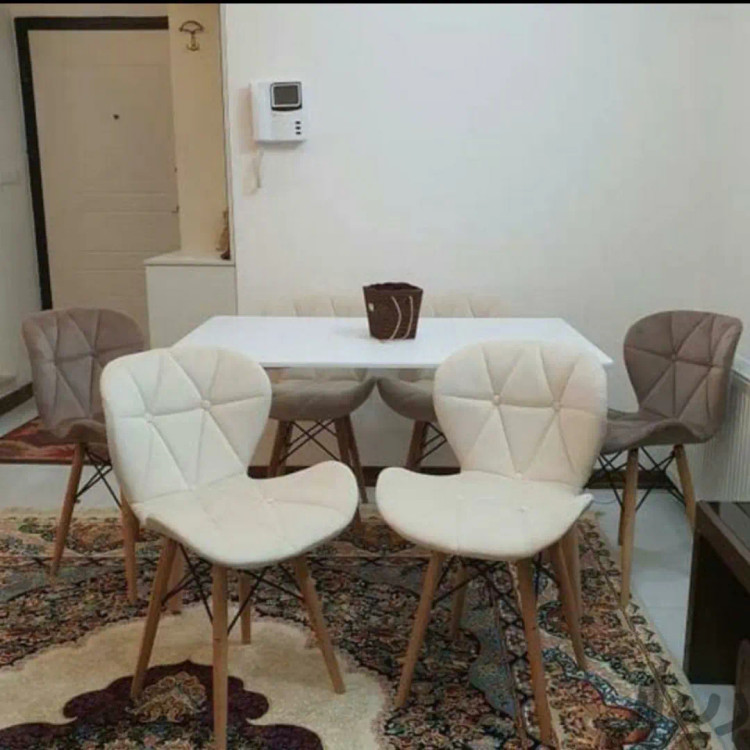 میز و صندلی غذاخوری نشیمن چوبی دوخت پارچه صنعتی مدل زین اسبی ست شش نفره