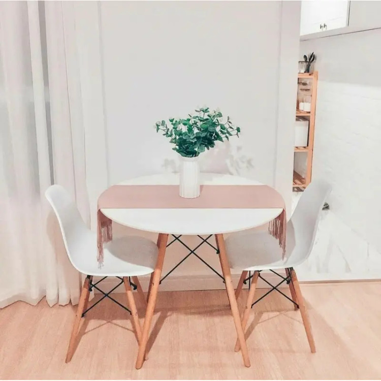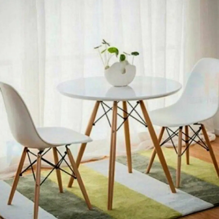 ست دو نفره میز و صندلی غداخوری مدل آریا جنس نشیمن صندلی فایبرگلاس نشکن شرکتی پایه های میز و صندلی چوب راش نشیمن صندلی در انواع رنگ به انتخاب خریدار قابل سفارش جنس صفحه میز، ام دی اف با روکش وکیوم و در انواع رنگ سفید، مشکی، طوسی و طرح چوب صفحه میز به صورت دایره با قطر ۸۰ و مربع در ابعاد ۸۵ در ۸۵ سانتی متر قابل سفارش