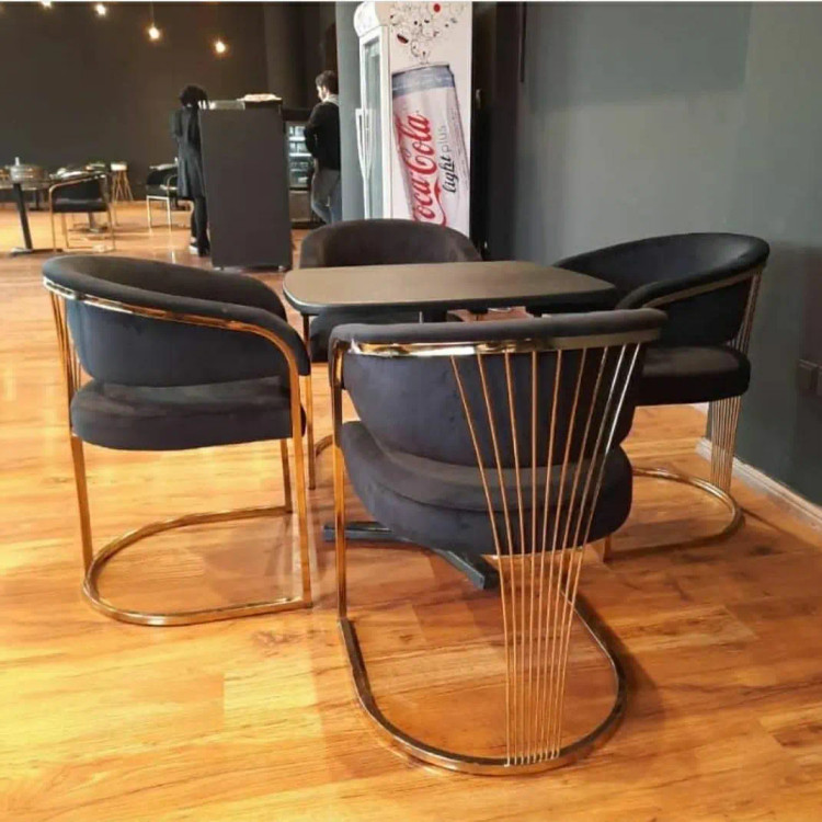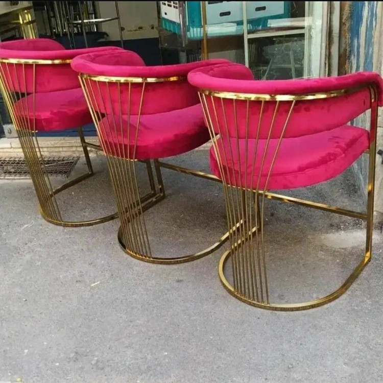 صندلی غذاخوری مدل سزار رنگ بدنه طلایی جنس نشیمن فوم سرد روکش پارچه صنعتی و در انواع رنگ به انتخاب خریدار رنگ بدنه فلز آبکاری فورتیک ارتفاع تا نشیمن ۵۰ سانتیمتر