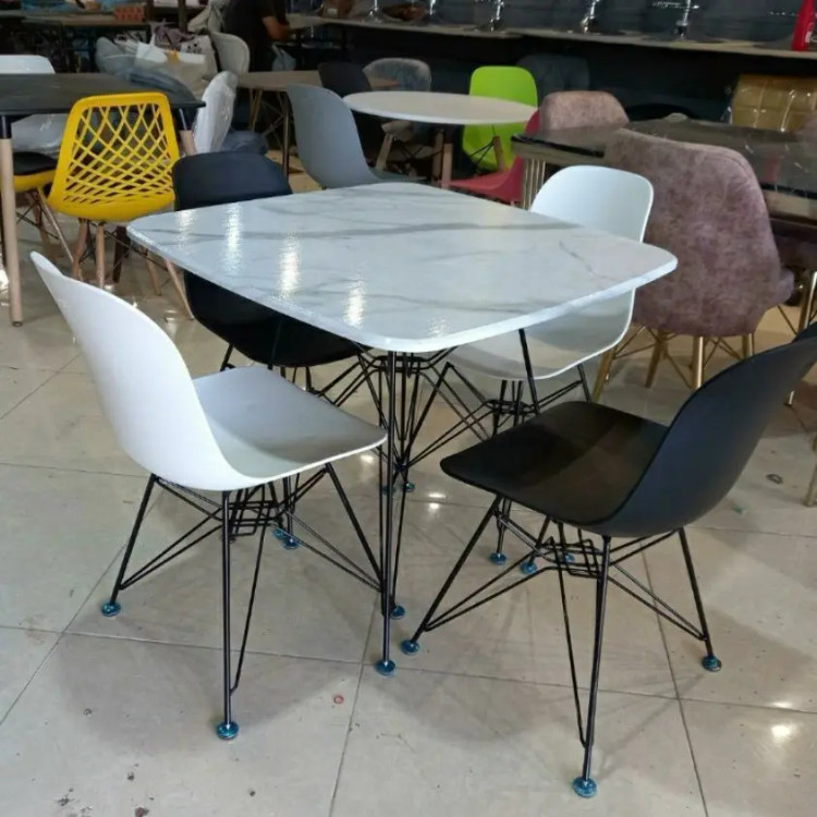 صندلی و میز غذاخوری طرح سنگی نشیمن صندلی فایبرگلاس نشکن شرکتی و در رنگ های مختلف صفحه میز ام دی اف با روکش وکیوم طرح سنگی پایه میز و صندلی فلزی از نوع ترانس دو پولش طرح اسپایدر ۱۸۰ کیلوگرم تحمل وزن ارسال از تهران به تمام نقاط ایران آماده همکاری با مراکز فرهنگی، تفریحی، اداری و تمامی ارگان ها و سازمان های خصوصی و دولتی، کافی شاپ ها، غذاخوری ها و...