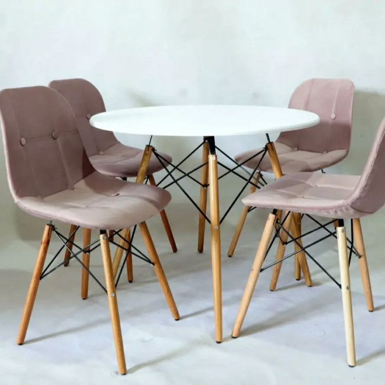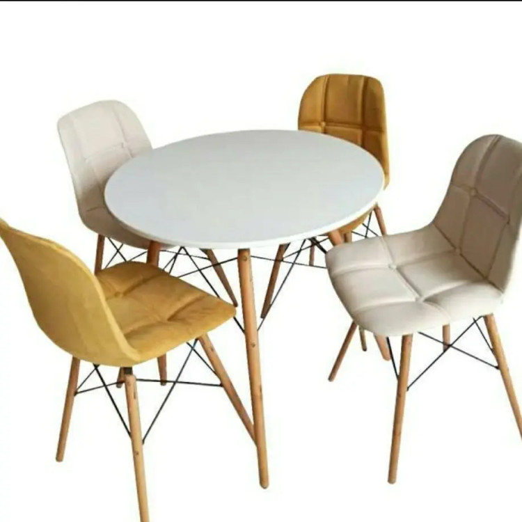 میز و صندلی نهارخوری چهار نفره چوبی پارچه ای مدل الماس