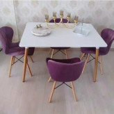 میز و صندلی ناهارخوری کلاف چوبی روکش پارچه ای پایه چوبی 4 نفره