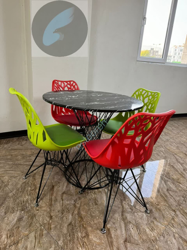 میز و صندلی غذاخوری فایبرگلاس مشبک تشک دار پایه فلزی ۴ نفره