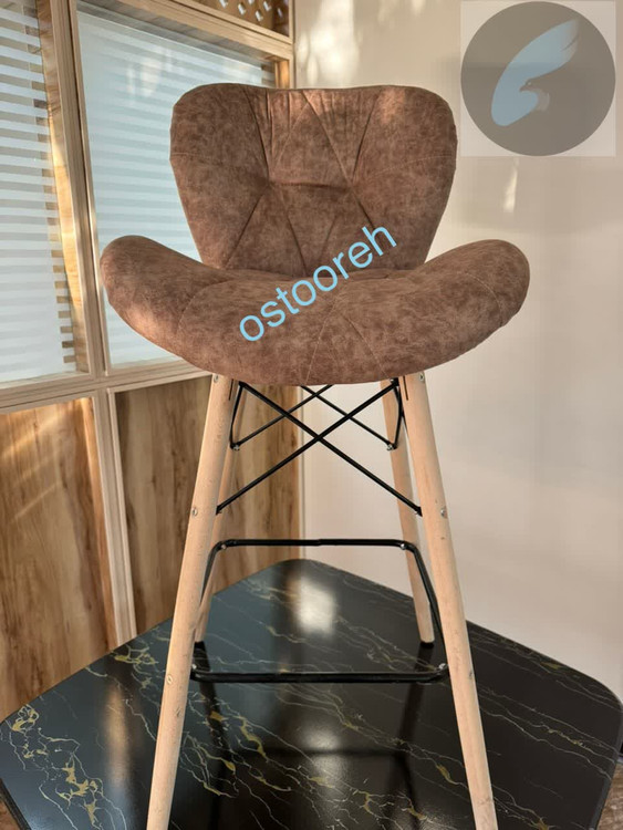 صندلی غذاخوری ارتفاع بلند پیشخوان زین اسبی پایه چوبی