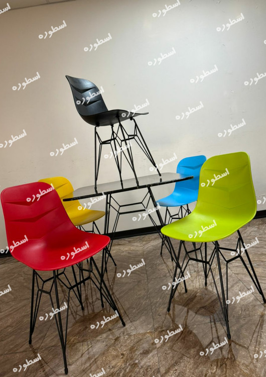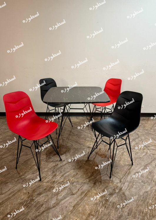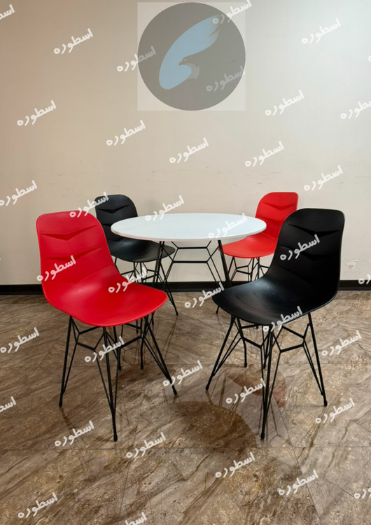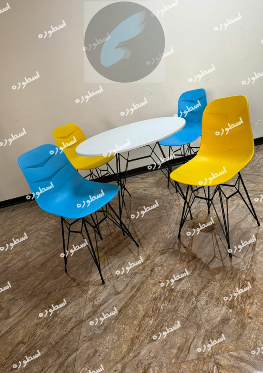 میز و صندلی ناهارخوری فایبرگلاس پایه فلزی مدل السا میز ام دی اف پایه اسپایدر