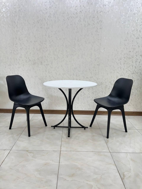 میز و صندلی غذاخوری فایبرگلاس پایه پلاستیکی میز گلدانی دو نفره