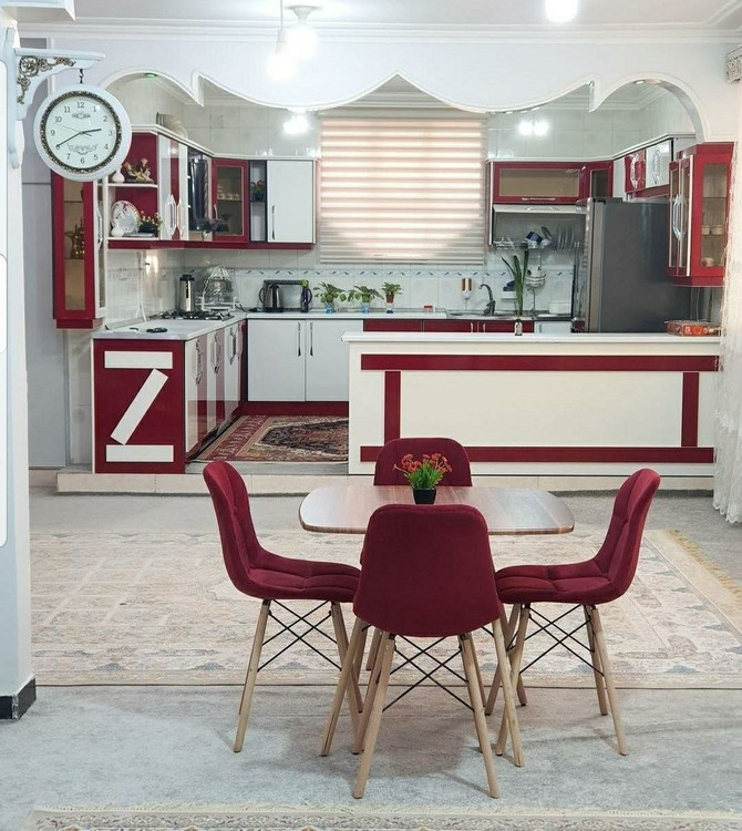 رنگ پارچه نشیمن صندلی های سوم و چهارم پایه چوبی