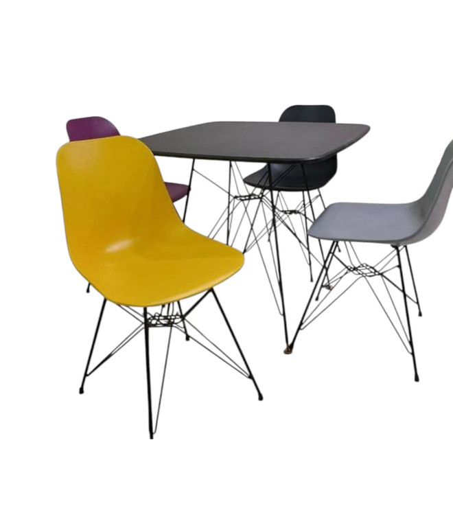 ست ۴ نفره میز غذاخوری ام دی اف و صندلی فایبرگلاس نشکن شرکتی فلزی