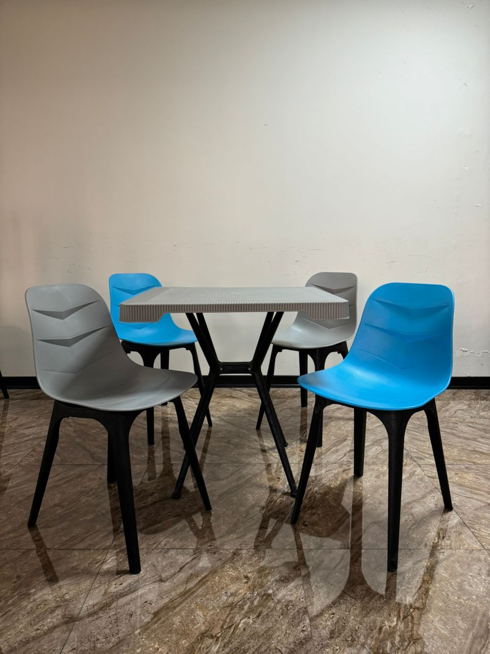 ست ۴ نفره میز غذاخوری پایه فایبرگلاس و صندلی فایبرگلاس نشکن شرکتی